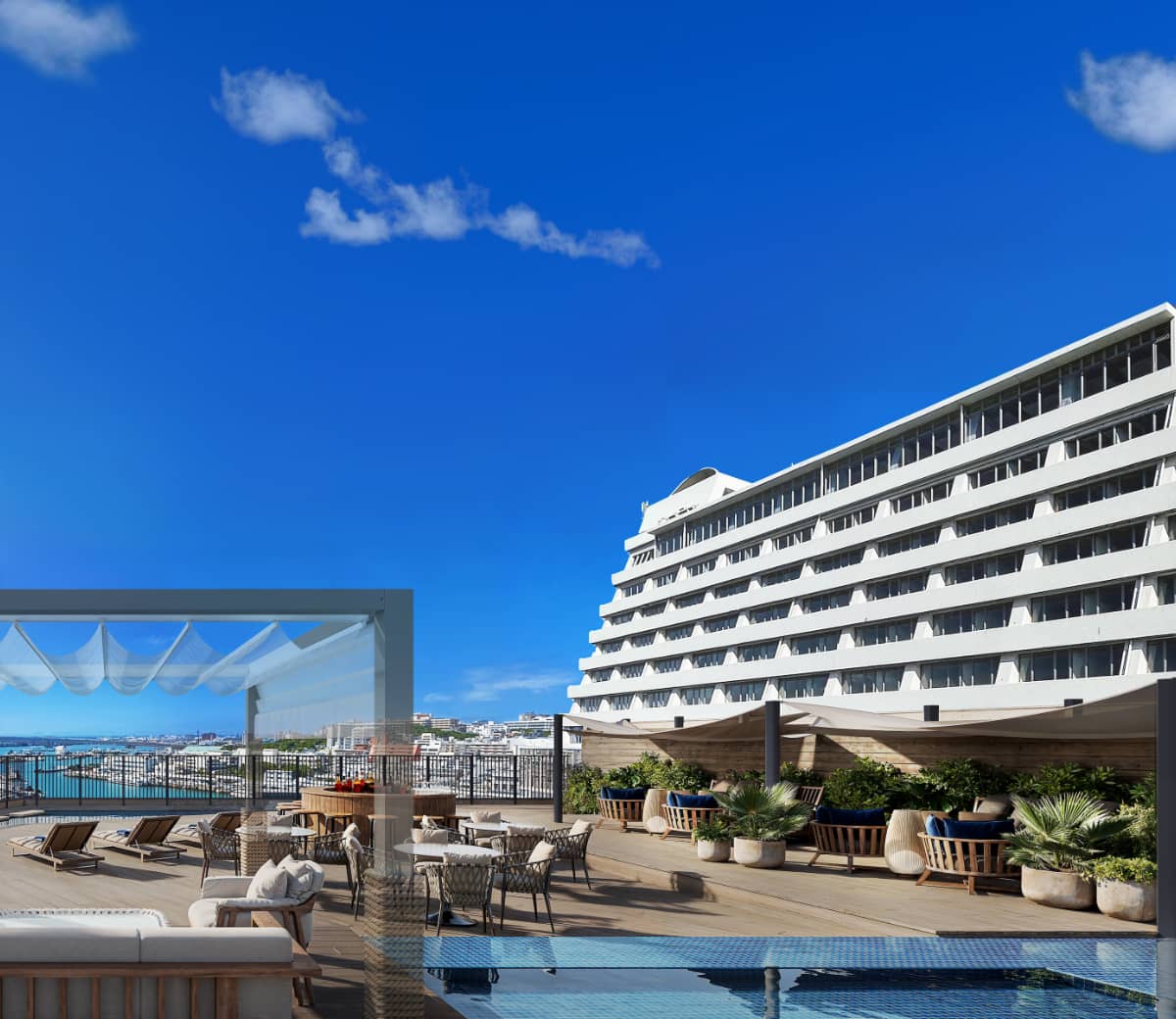 那覇の街も、離島の海も、 ホテルで過ごす時間も。 泊港「とまりん」直結だから、すべてが思いのまま。 海を見渡すルーフトップ、 旅のスタイルで選べる5つのレストラン。 旅をもっと自由にする、新しい那覇の起点。 サウスゲートホテル沖縄 2026.05 GRAND OPEN