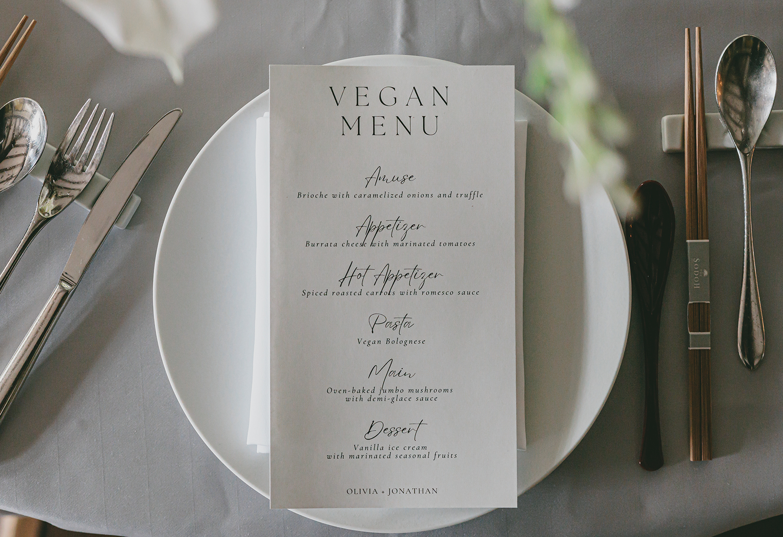 ・Hair & makeup services (for bride and groom, one look each)